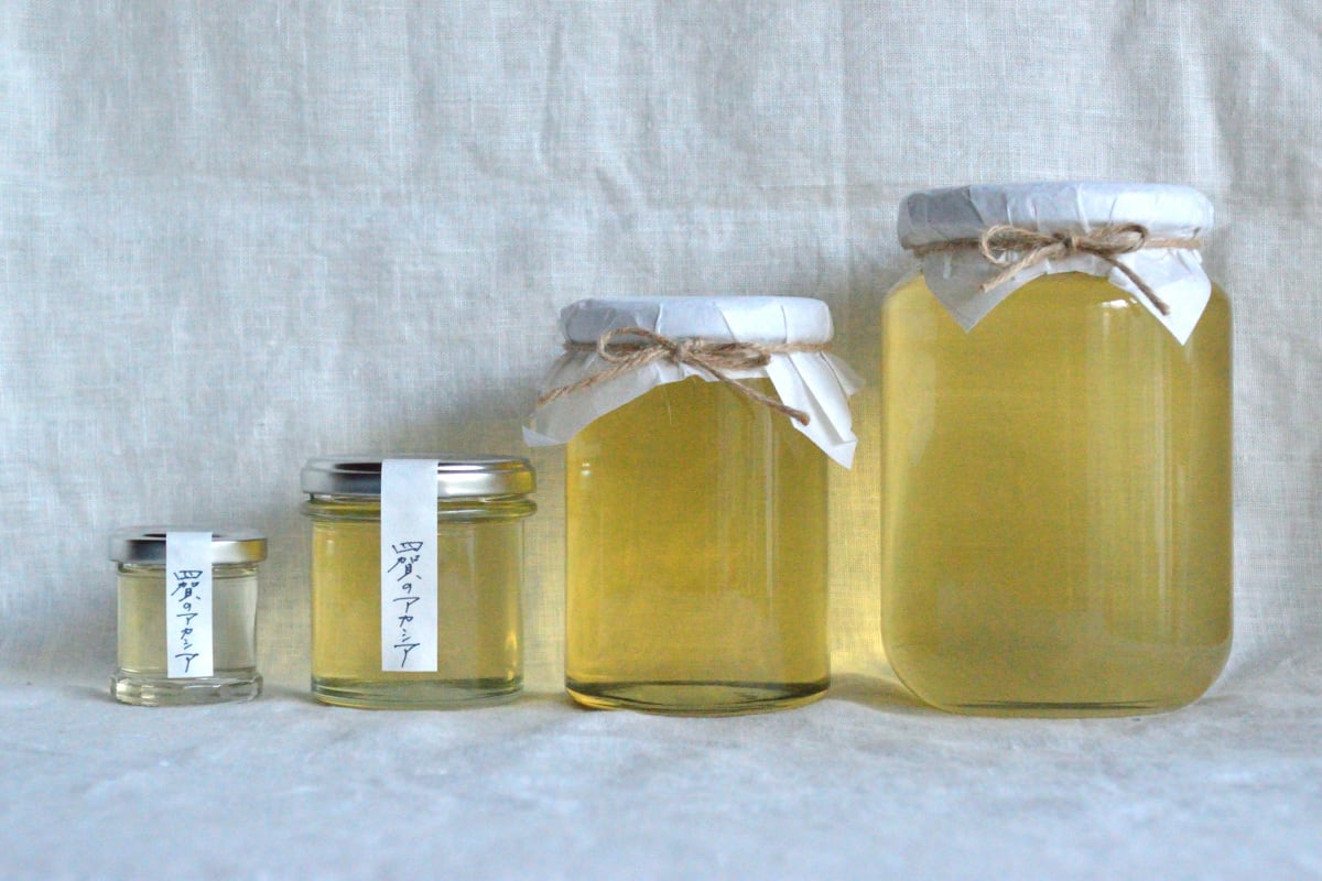 透明にも近い金色。ふわりと鼻に抜ける繊細なアカシアの香りと、クリアな甘みが特徴の蜂蜜。くせのない食べやすい味で、素材の風味を引き立ててくれるので、お料理にもおすすめ。